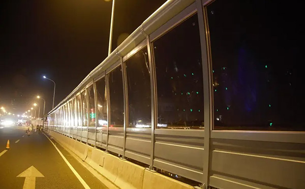 pc板是声屏障工程中常用的透明隔音板。在声屏障工程中,特别是城市高架桥声屏障工程中,不仅要求隔音板的隔音效果要好,同时还追求景观效果及视觉的通透性(PC耐力板的透明度好),而且也要考量高架桥的承受力(要求声屏障容重越低越好,这时PC耐力板自然是透明隔音板优先的选择)与屏障的安全性(玻璃材质的透明隔音板被肇事车辆撞击后容易破碎,重而锋利玻璃碎片从高架桥掉落,将对桥下的行人产生巨大的安全威胁,如果选用质轻的PC耐力板则安全系数大为提升)。